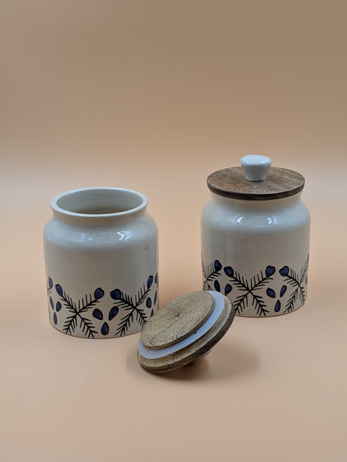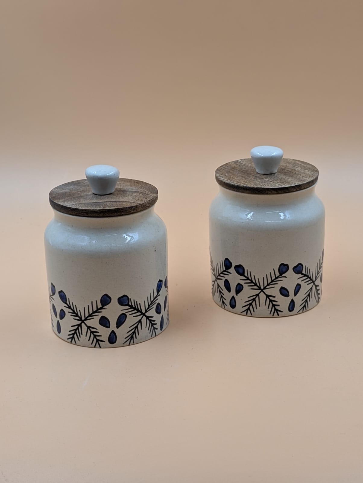 Handpainted Jars SetSet of 2 handpainted ceramic jars. Capacity approx 500 grams and 1 kg.