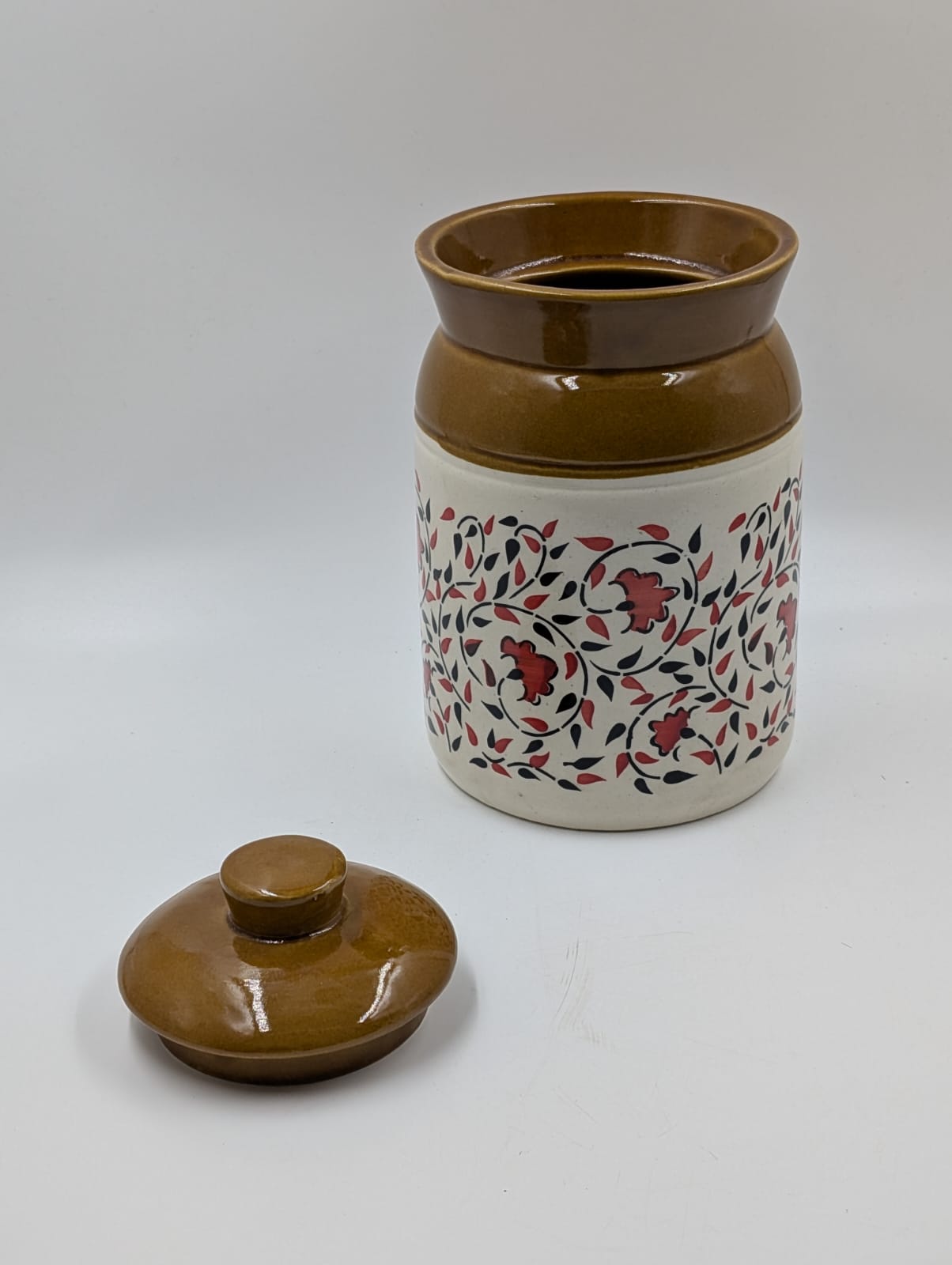 Handpainted ceramic jar. Can be used as a vase without lid. Good deore item.