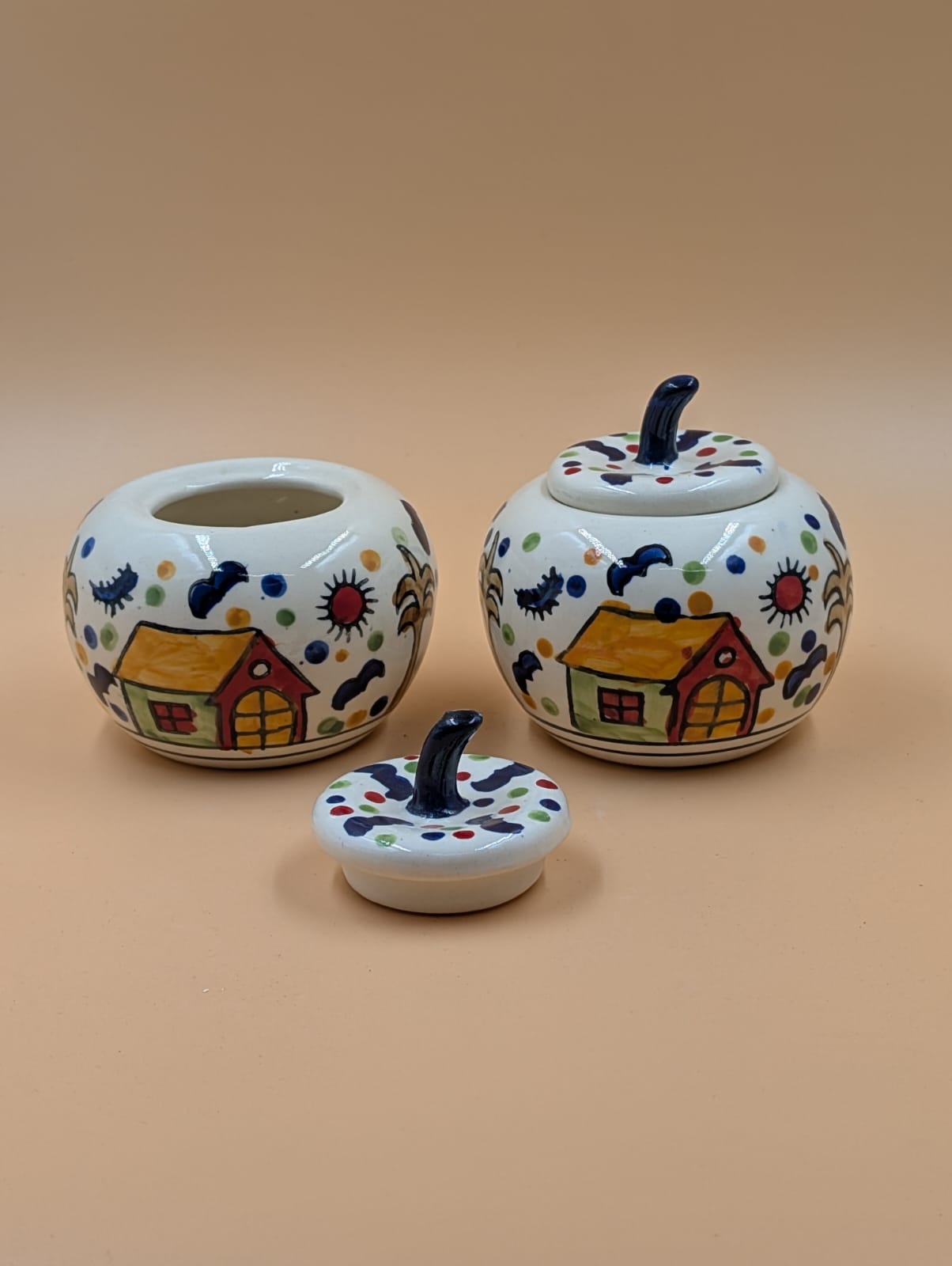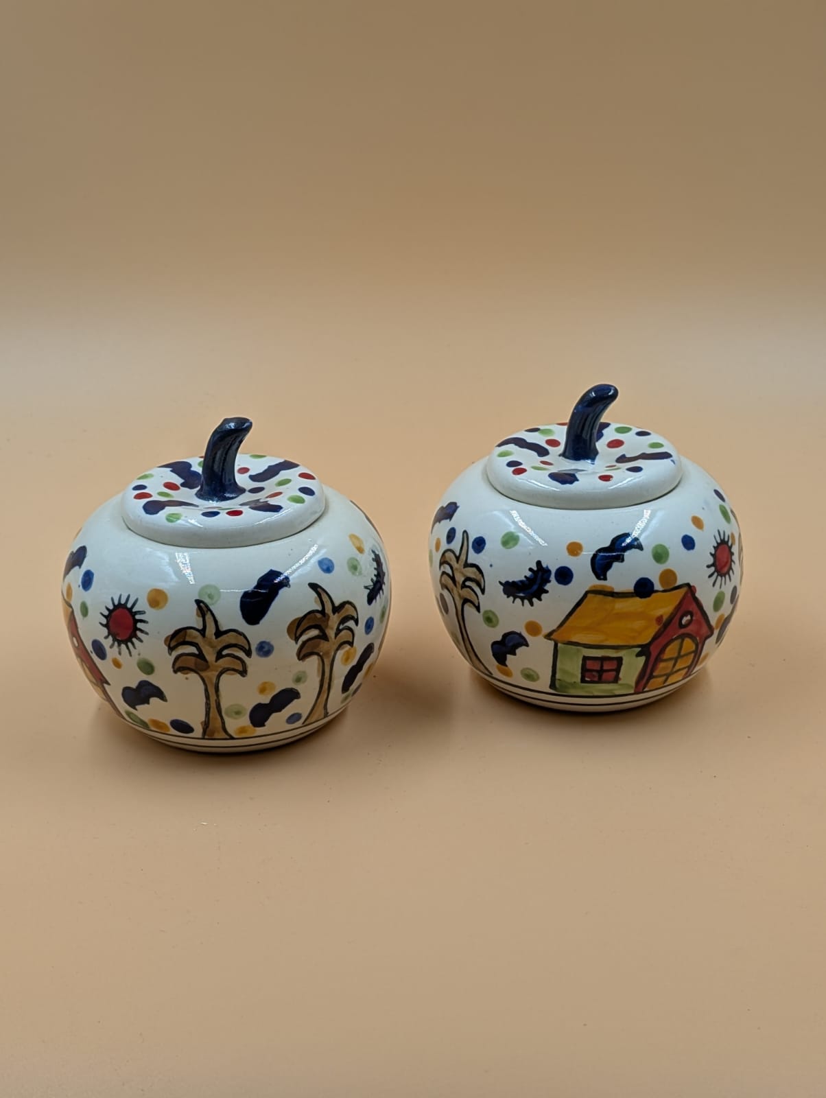 Set of 2 handpainted jars.