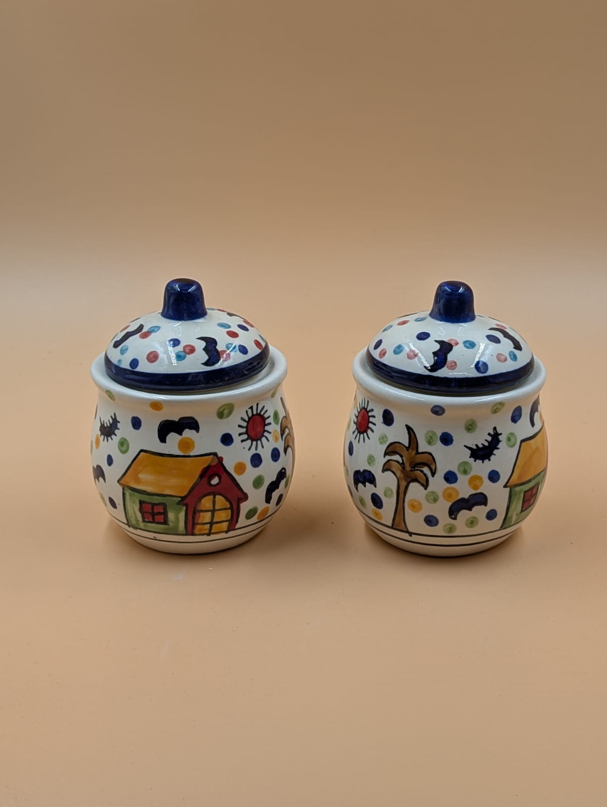 Set of 2 handpainted jars.