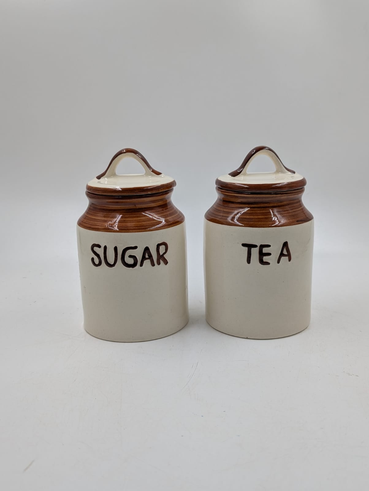 Handpainted ceramic jars in set of 2. Can be used as kitchen decore item.