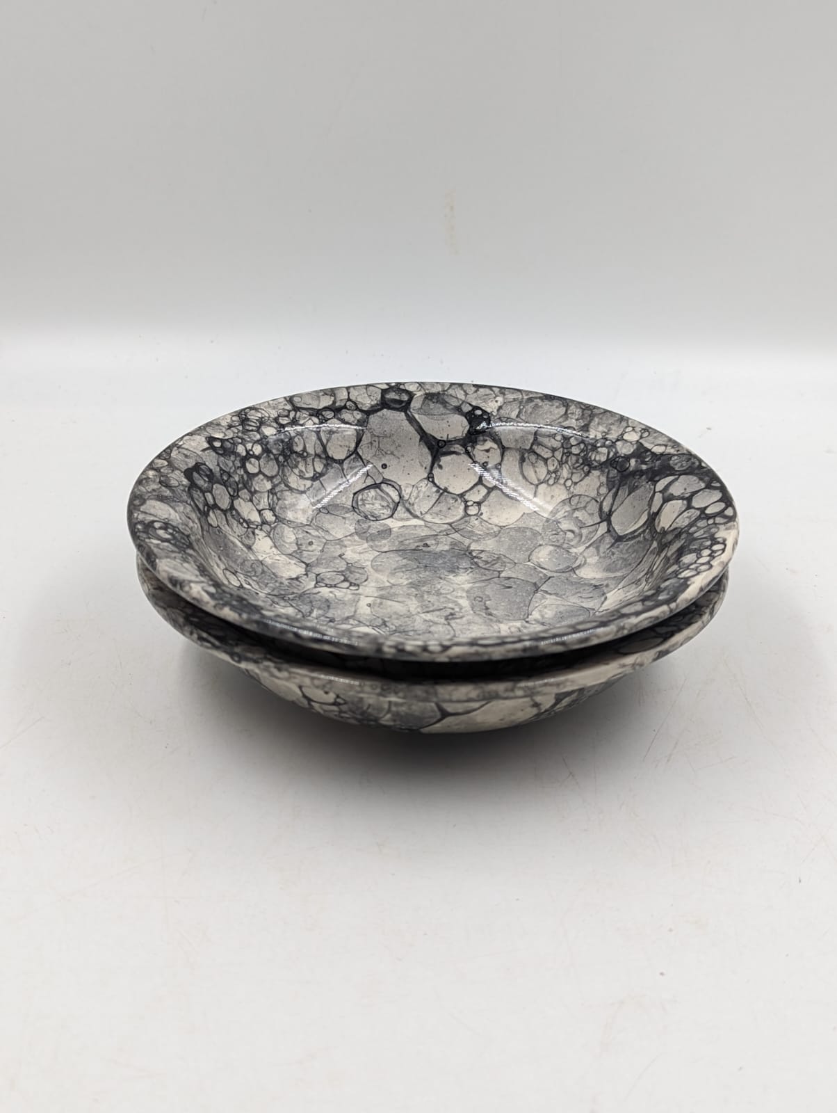 Ceramic deep plate in black colour bubble design. Set of 2 plates.
