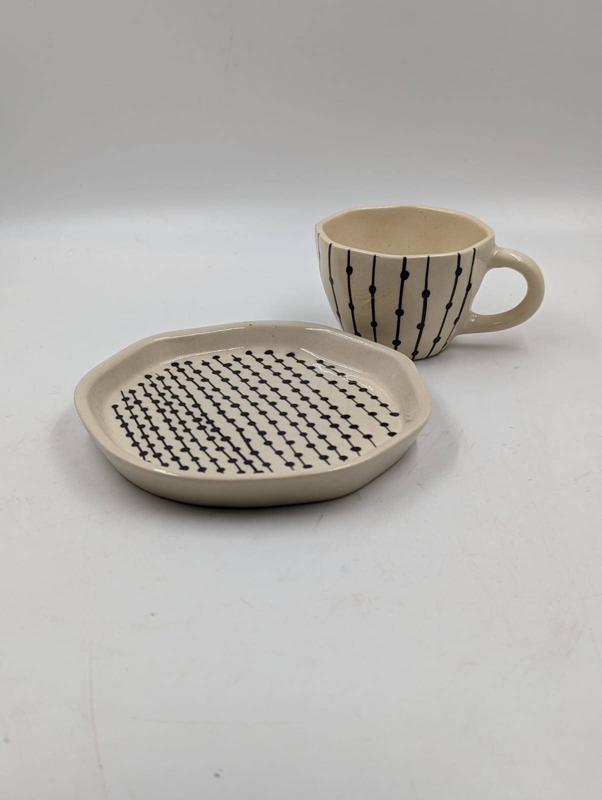 Cup and Plate set or Breakfast set. Handmade and handpainted cup and small plate in ceramic.