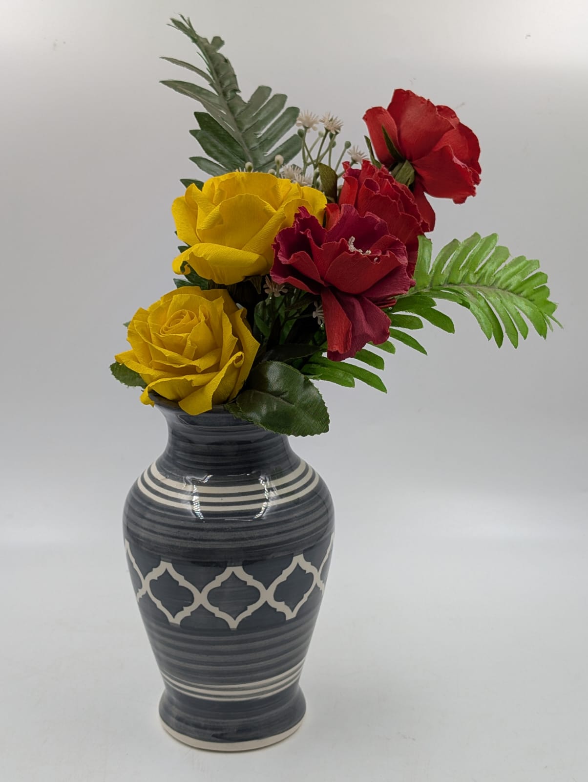 Handcrafted handpainted flower vase made in ceramic.